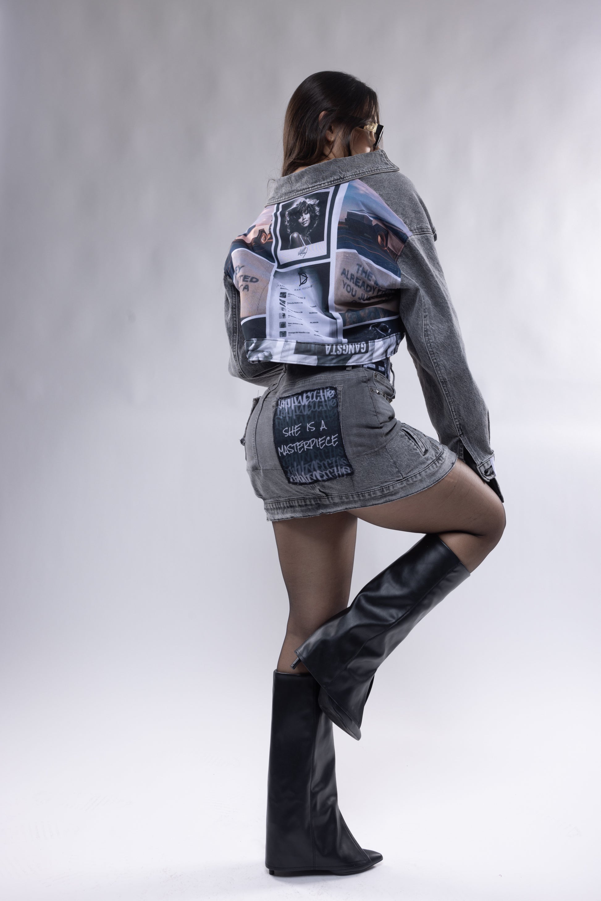 Diseño de conjunto en 2 piezas Jacket + Skirt Diseñado en un estilo único totalmente de denim stretch inspirado en la innovación mundial .